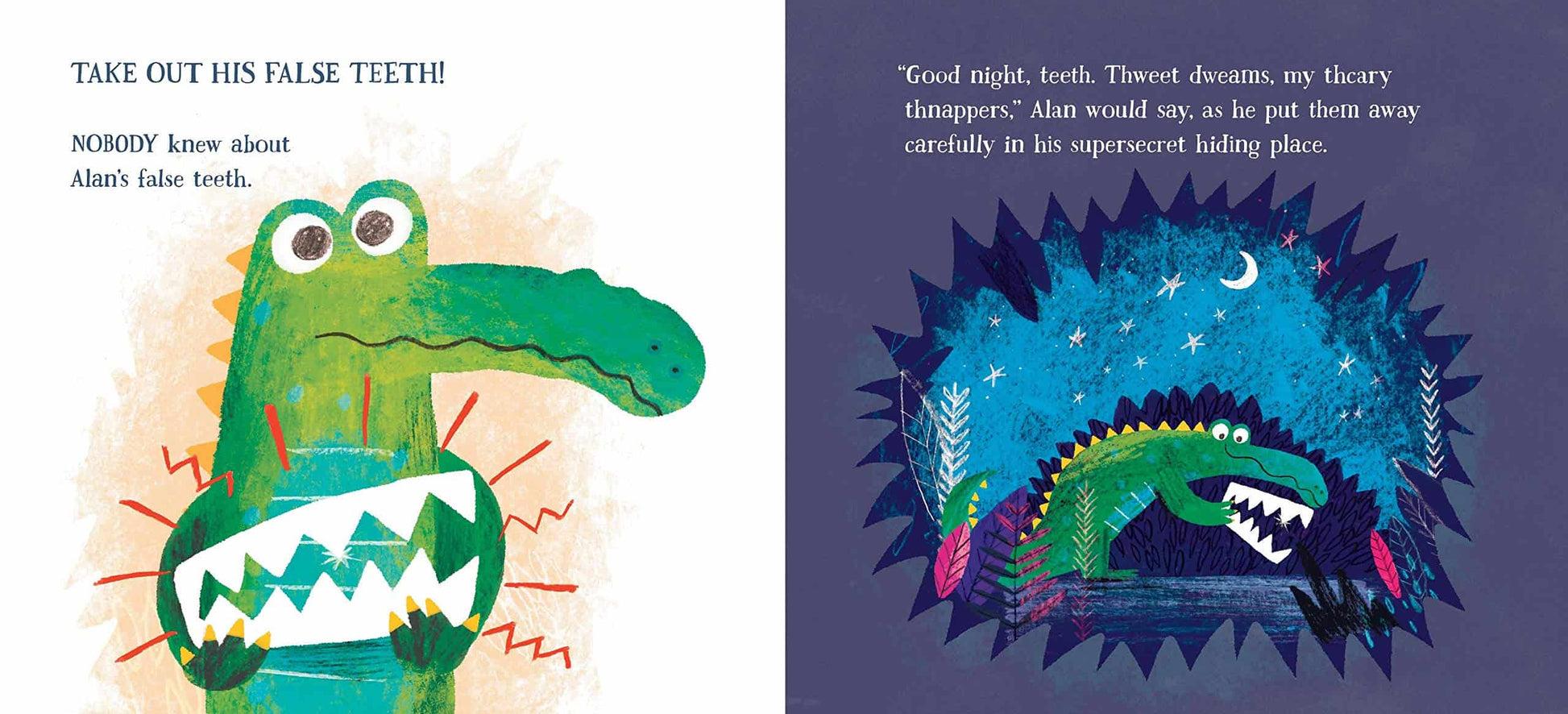 Meet Alan, an alligator with a secret. Famed for his big, scary teeth, he sneaks into the jungle every day to scare the jungle animals ... "I'm big, scary Alan! Fear my razor-sharp teeth!" But after a long day of scaring, Alan likes nothing better than to run a warm mud bath and take out his false teeth, which nobody knows about! That is, until his teeth go missing. What will Alan do now? Scaring is the only thing he knows how to do! Can he still be scary without them?