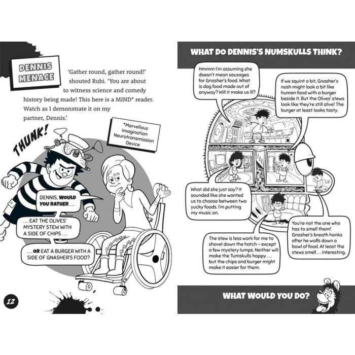 Join Dennis, Gnasher and friends as they put their numskulls to the test and ponder all manner of weird and wacky would you rather questions.
