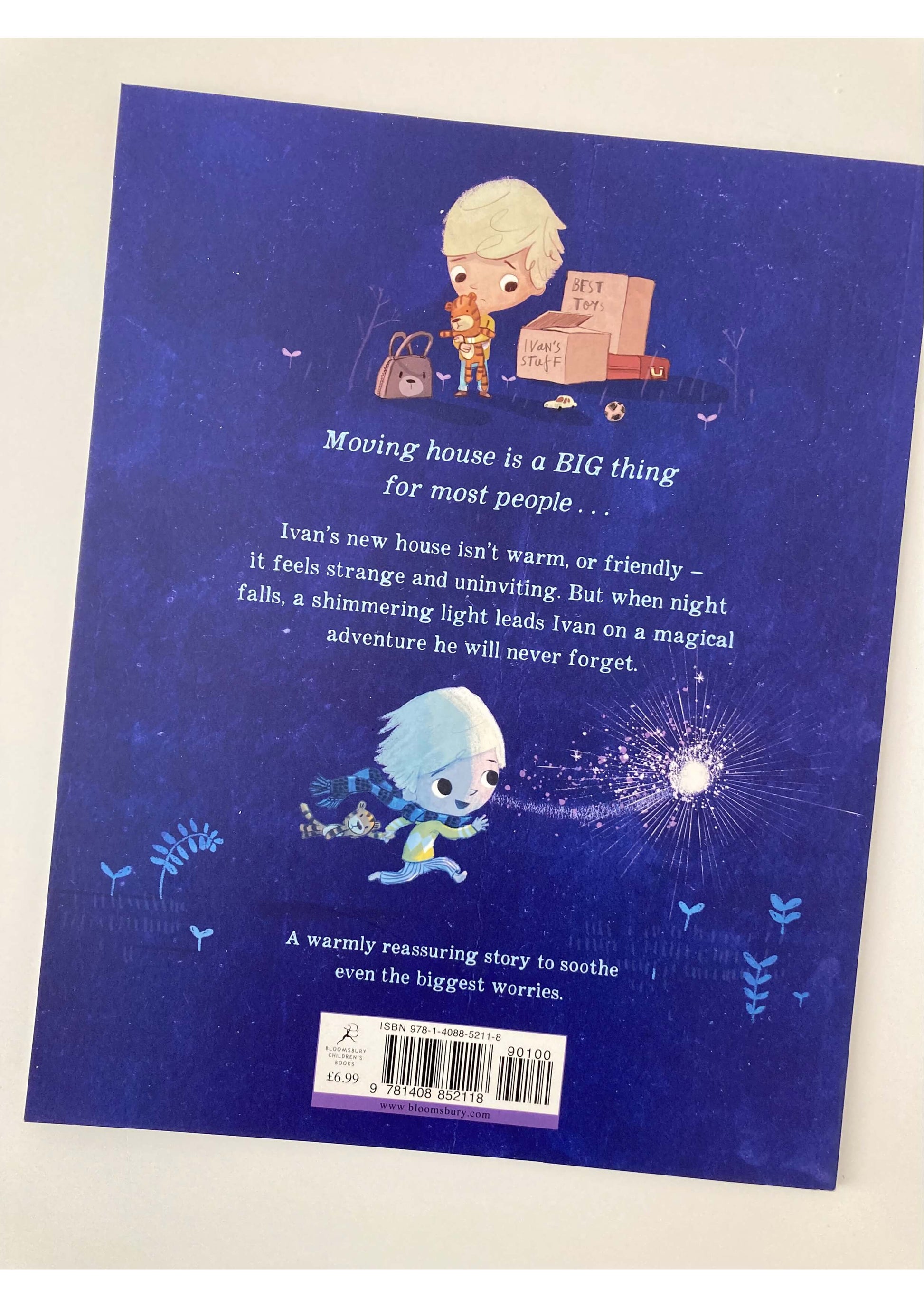 Ivan finds his new house strange and can't sleep. He lies awake and then sees a shimmering light come down. The light turns into a creature called a Moji, and it takes him on a fabulous night-time adventure, up high into space, bounding through starlit forests and down deep into the oceans. Ivan has never had so much fun! And the magical Moji shows him that soon the new house will feel like home.