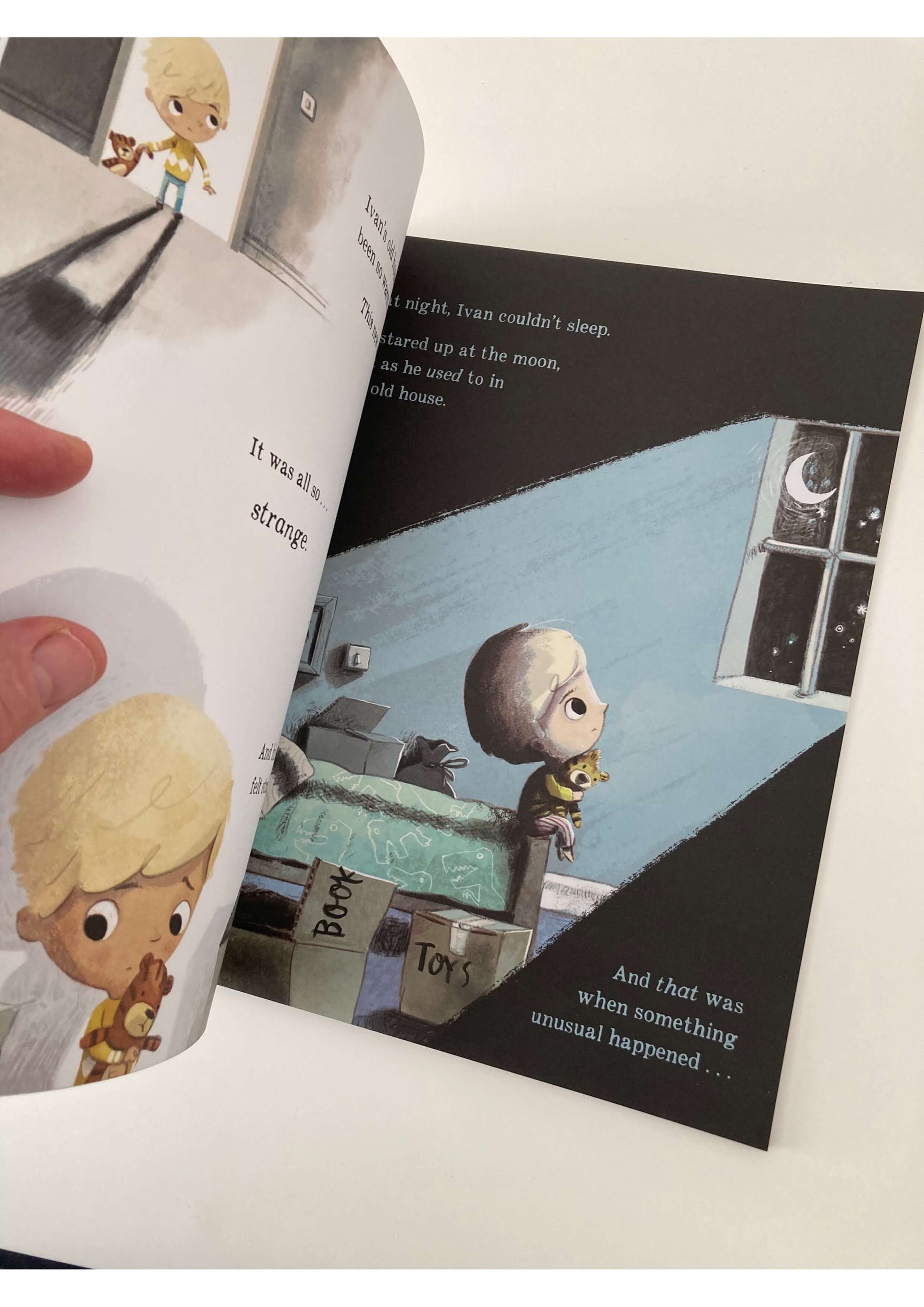 The central character is a small boy called Ivan, who feels worried and insecure when faced with the unfamiliarity of a new home, until a light from the moon beckons to him in the dark night and a strange magical journey begins..