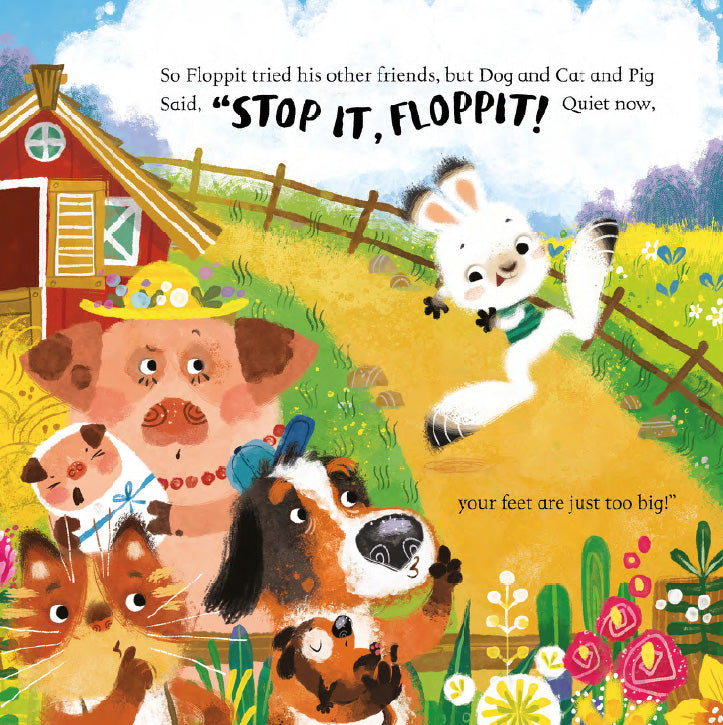 Floppit's farmyard friends have had enough of his enormous bunny feet causing chaos! But his big clumsy feet might just save the day when Chicken's egg rolls away . . .