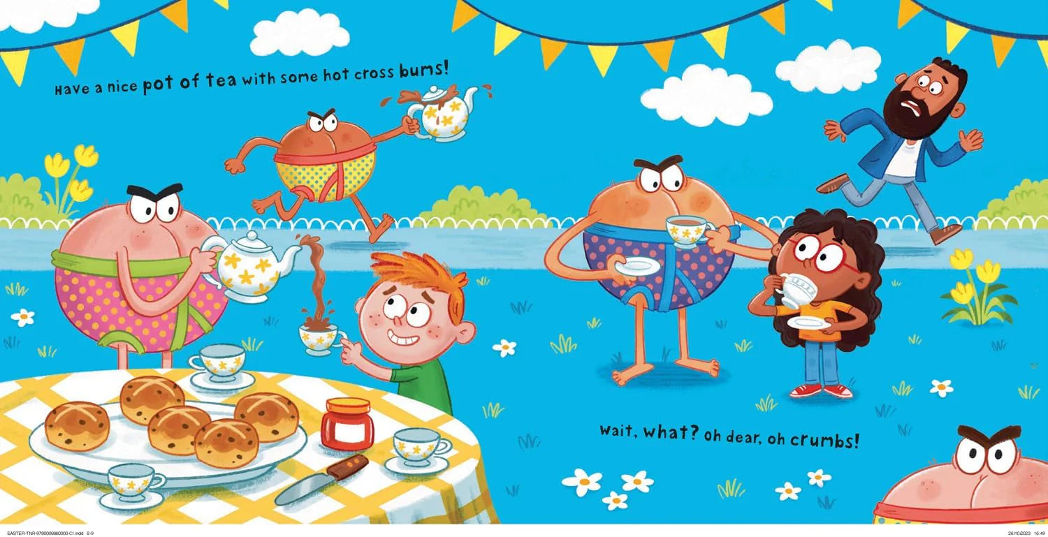 Spring into Easter with this laugh-out-loud journey through all things eggs, rabbits and chocolate – but with a twist! An Easter Bunny on a Space Hopper? Eggs with legs? A hot cross BUM? That’s not right!