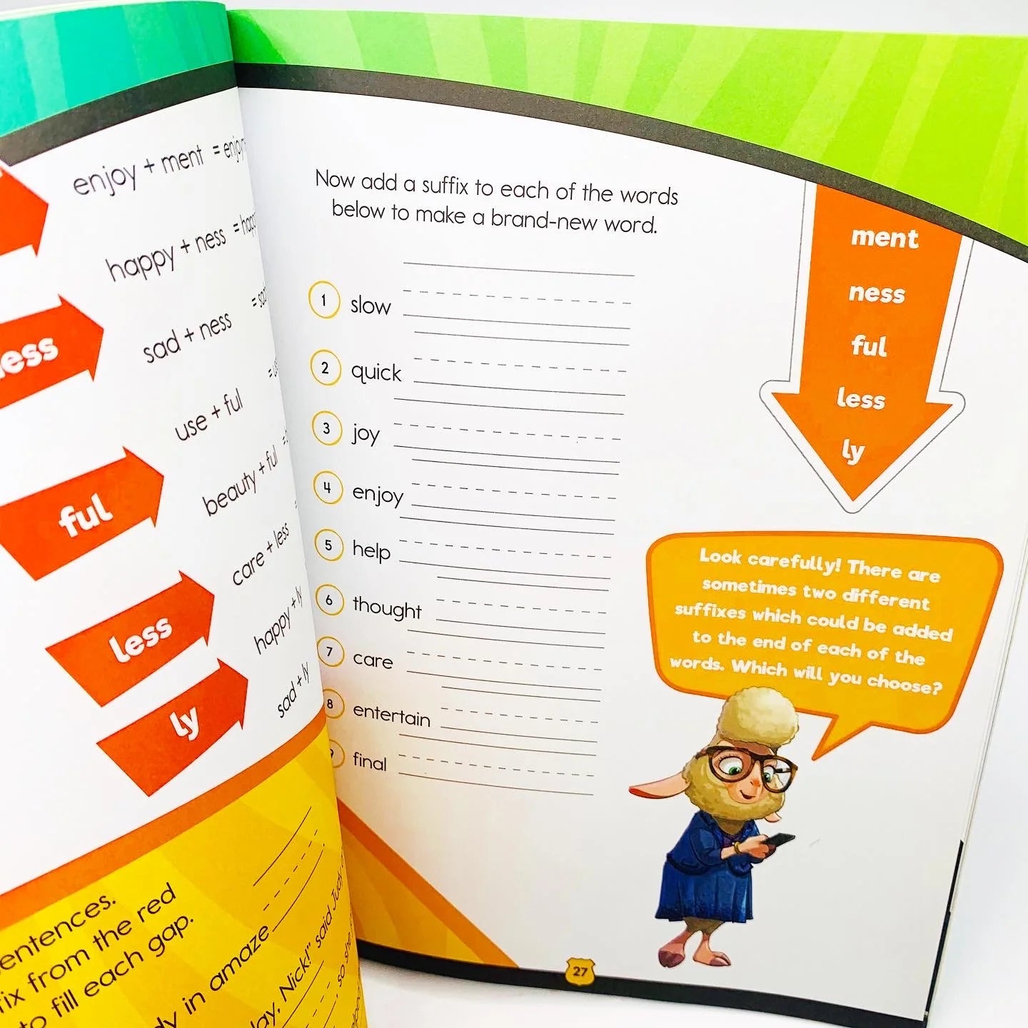 * Imaginative way to master essential English skills like using suffixes and prefixes, using words in sentences and using adjectives and adverbs.