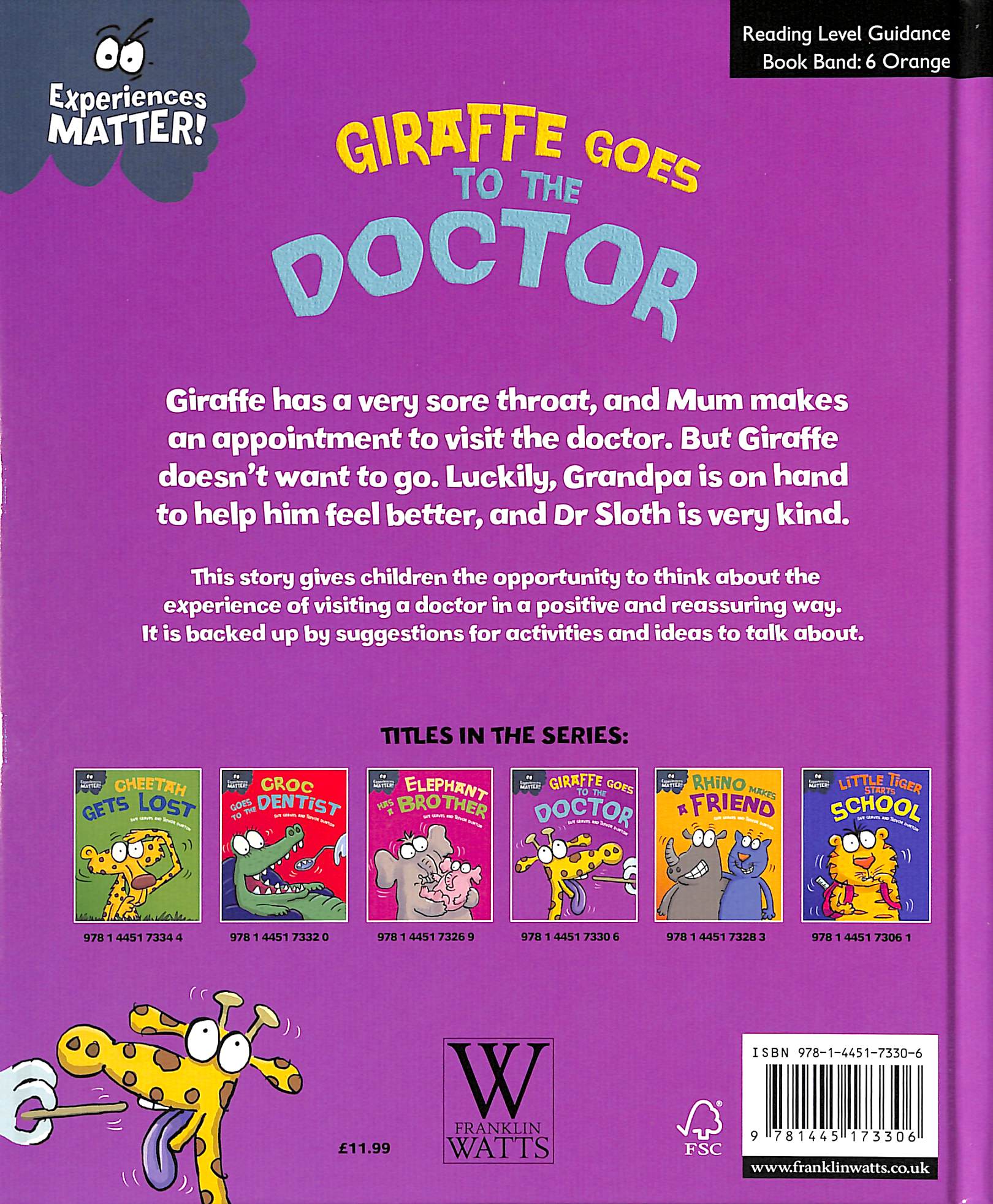 This funny, charming story is the perfect way to introduce young children to the experience of visiting the doctor. Also included are suggestions for activities and ideas to talk through together to help children reflect on their own experiences.