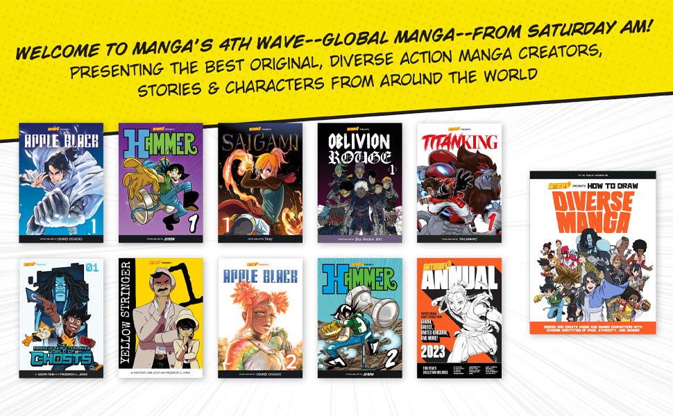 Saturday AM, the world’s most diverse manga-inspired comics, are now presented in a new format! Introducing Saturday AM TANKS, the new graphic novel format similar to Japanese Tankobons where we collect the global heroes and artists of Saturday AM. These handsome volumes have select color pages, revised artwork, and innovative post-credit scenes that help bring new life to our popular BIPOC, LGBTQ, and/or culturally diverse characters.