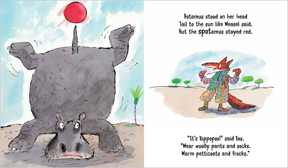 But the spot on Hippo's bottomus was not a diseasel, not even a spotamus but something quite silly . .