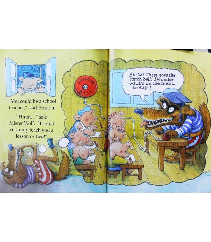 Mister Wolf is condsidering getting a job so he can buy his dinner instead of having to go out and catch it! But what could he be. a footballer, a teacher, an astronaut? It's a difficult decision when all he's good at is eating pigs!