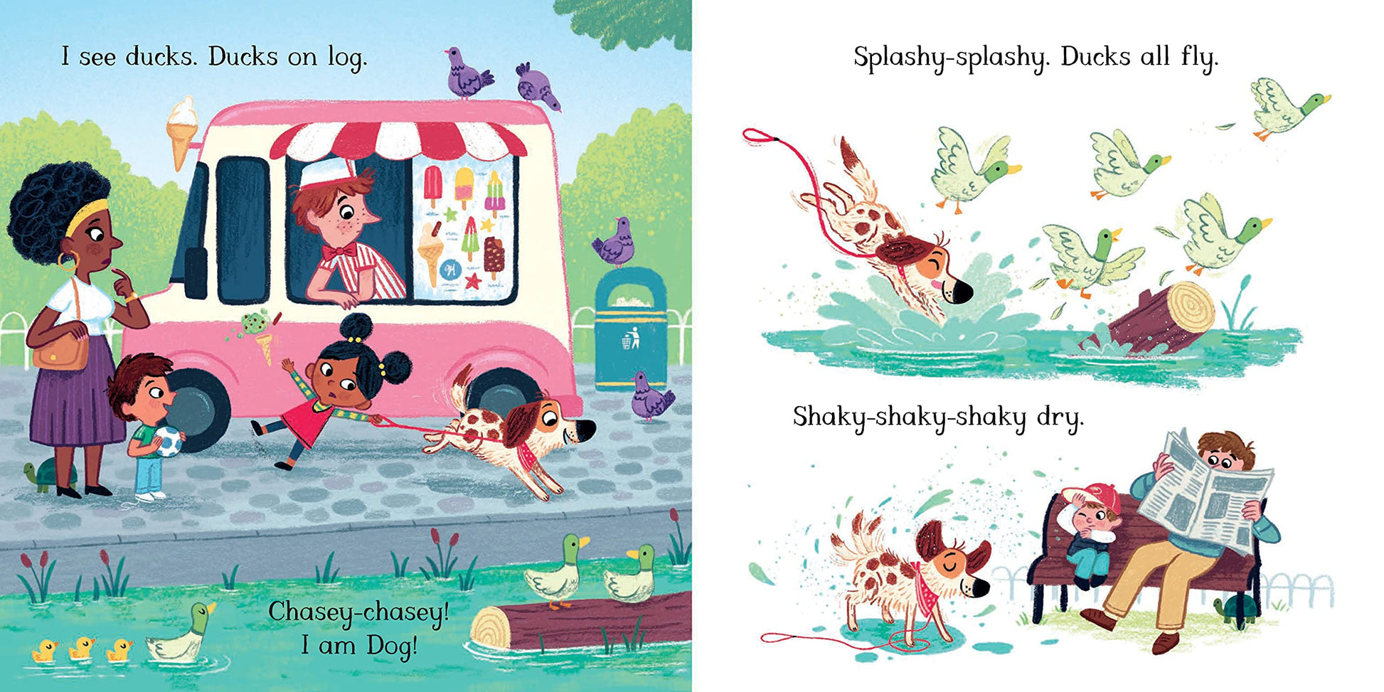 A day in the life of a dog... told from the dog's point of view. Follow one cheeky little dog, as it sniffs, rolls and races through a fun-filled day. There are sticks to fetch, ducks to chase, tasty treats to chomp... and of course, cuddles!