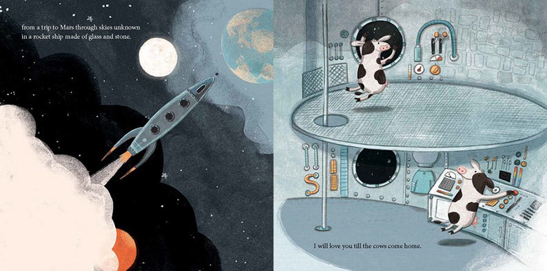 I will love you till the cows come home from a trip to Mars through skies unknown, in a rocket ship made of glass and stone... I will love you till the cows come home.