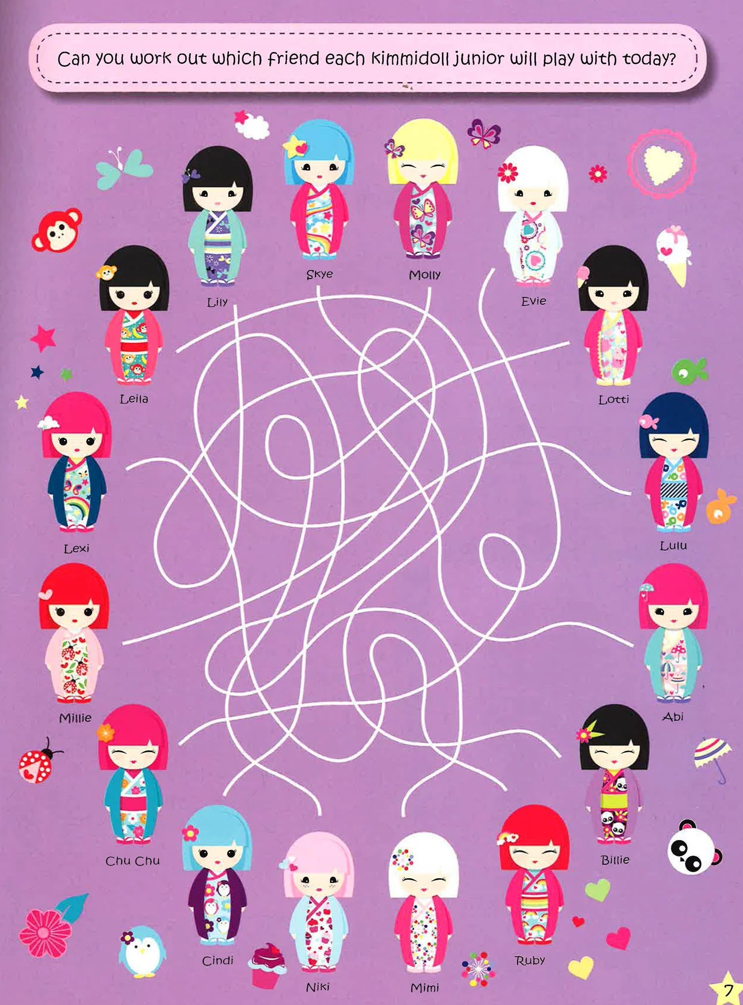 Children can search the pages for their favourite Kimmidolls in Kimmitown.