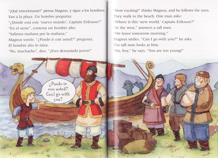 Magnus dreams of going to sea with the Viking explorers. A big adventure awaits him. He carries a secret for one day, far in the future... The parallel text will help you follow Magnus to the 'new world' in English - and Spanish!