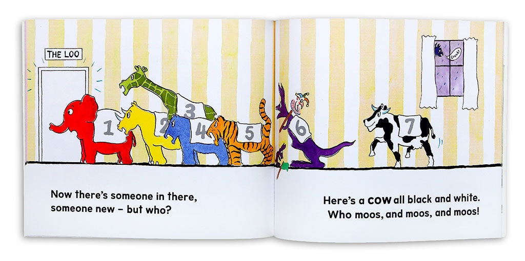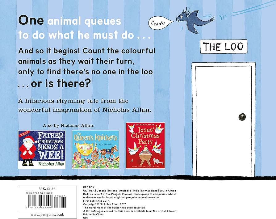 In this riotous rhyme from Nicholas Allan, the queue for the loo gets very long indeed, as a series of multi-coloured animals impatiently join!