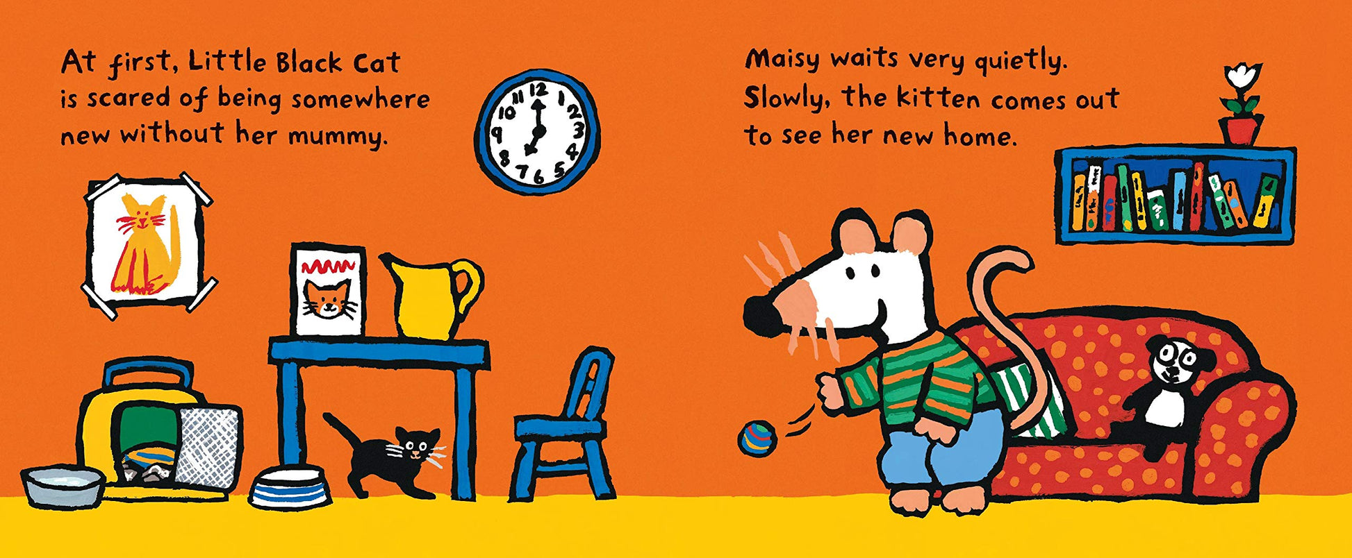 Penguin's cat has had kittens, and Maisy is taking one home! First she chooses a name for her new friend: Little Black Cat. Next, she learns how to look after a pet responsibly by feeding it, handling it gently, cleaning up after it and taking it to the vet!