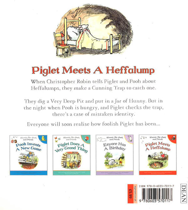 Pooh and Piglet decide to catch a Heffalump together, but when Piglet meets one in the middle of the night, he realises that catching Heffalumps is much easier with two. This beautiful little storybook is a great way to introduce young readers to the characters in A.A.Milne's Hundred Acre Wood.
