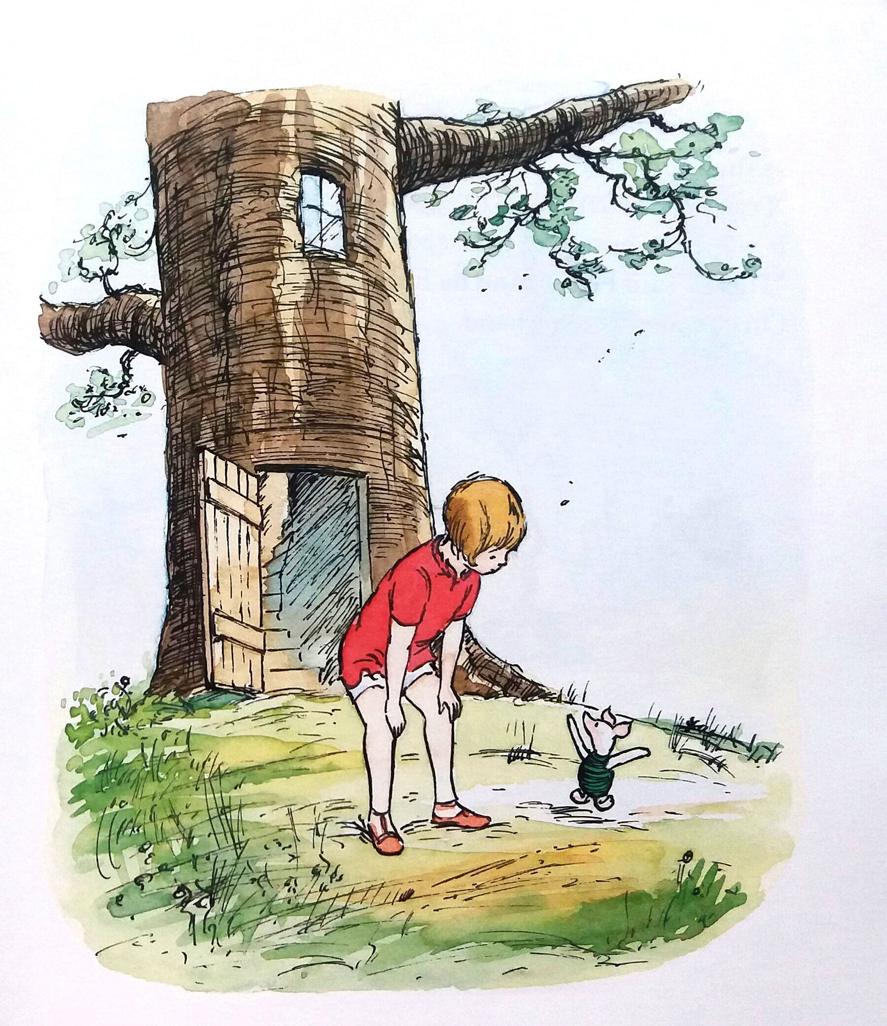 "Oh, dear, oh, dear, oh, dear!" said Piglet to himself. And he wanted to run away. But somehow having got so near, he felt that he must just see what a Heffalump was like.
