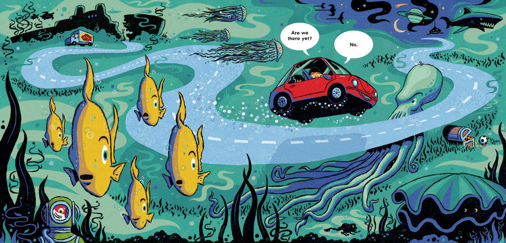 The car trip to Grandma's house is taking forever. Are We There Yet? explores the amazing possibilities of imagination on a long, boring car journey, as time slows down so much that it starts going backwards. Featuring dinosaurs, Ancient Egyptians, knights and pirates, this is one amazing journey through the imagination.