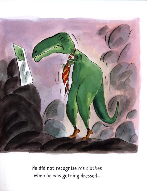 Meet the accident-prone T-Rex. First he loses his glasses, then he has one disaster after another: he can't tell his breakfast toast from a slipper, then he mistakes a prehistoric owl for his bath towel!