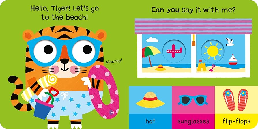 Bold, googly eyes and a sliding mechanism bring this adorable tiger to life, while children share the simple story and point at the bold pictures.