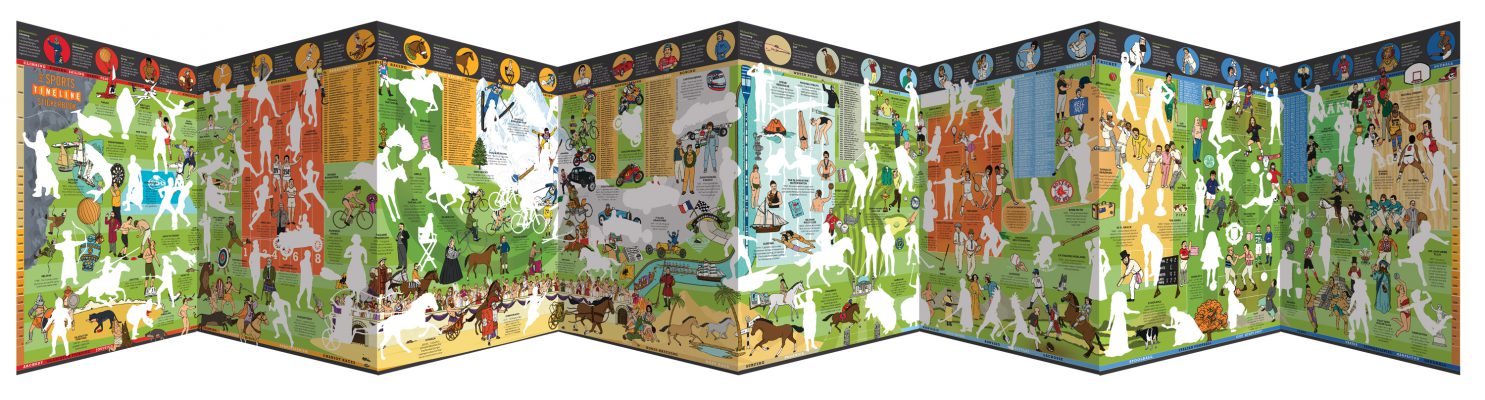The What on Earth? Stickerbook of Sport can be unfolded and spread out on a table, stretched across the floor or even stuck up on a wall. To make your own sticker-book version of the story of sport over more than 2,000 years just unfold the timeline attached to inside back cover and stick more than 100 stickers in the right places. When you are finished, put your name on the nameplate, carefully tear off the timeline along the perforated edge and stick it on a wall using blue-tac, tape or pins.