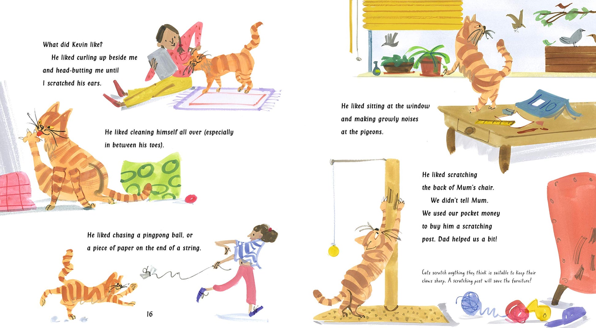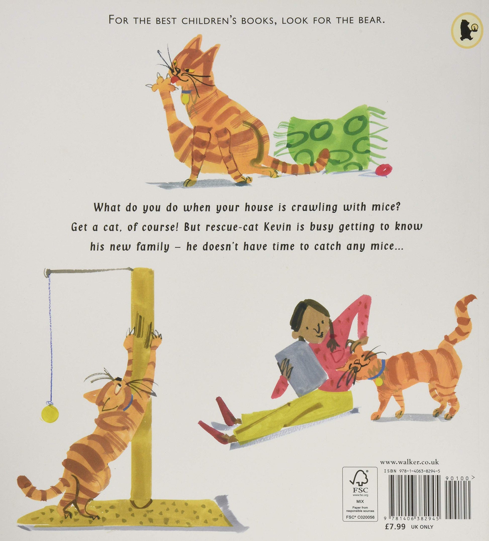 A non-fiction picture book about a rescue cat, with a charmingly funny story by Vivian French and lively illustrations by Salvatore Rubbino. The story follows a family who have just moved into a mouse-infested flat. Dad is terrified of mice and, after several sleepless nights, decides they should get a cat. They meet Kevin the cat in a rescue home - he's big and strong, and they're sure he'll catch all of the mice. But Kevin has other ideas… Join this lovable tomcat as he settles into his new home, gradually learning how to use a litter tray, when he'll be fed and that it's probably better to use a scratching post than to shred the back of Dad's chair.